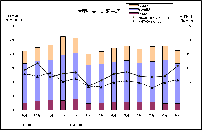- 衣料品の前年同月比は、全店ベースで8.7%減、既存店ベースで9.0%減