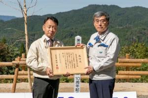 県からは、長きにわたる森林づくりの推進と地域の活性化に大きく貢献された功績に 敬意を表し、同社に対し感謝状を贈呈しました。