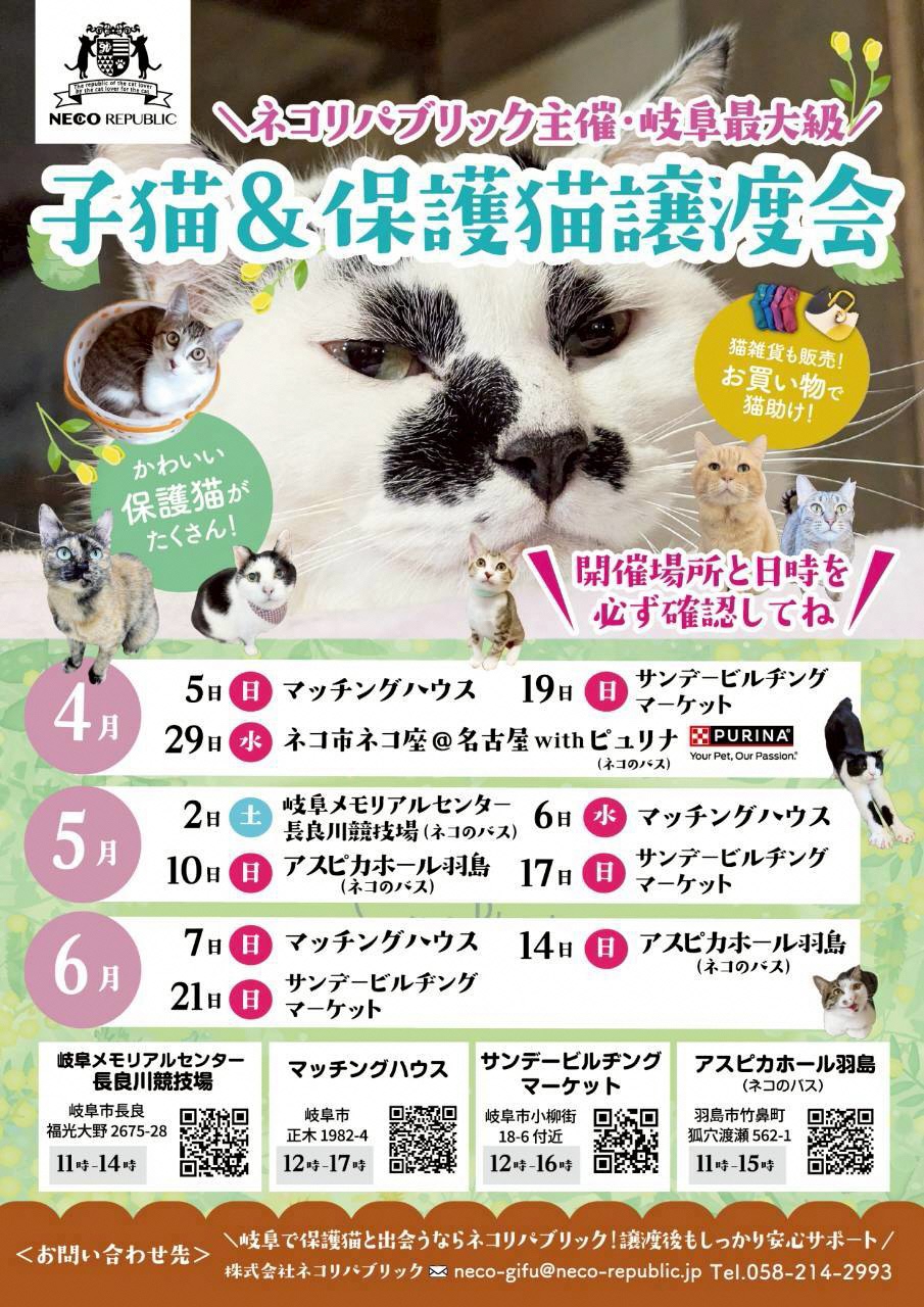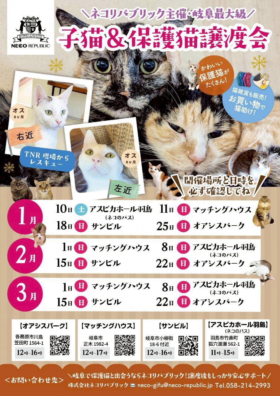 | ねこしあぎふ | 岐阜市 | ホームページ<外部リンク> | 080-4840-0902 nekonoshiawasegifu@gma il.com |
