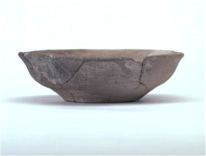 中世前半(11C後半〜13C前半)の土師器の碗です。ロクロによって成形されています。外面は回転ナデの調整(仕上げ)です。底にはロクロから外す時に糸で切り取った痕が残っています。
