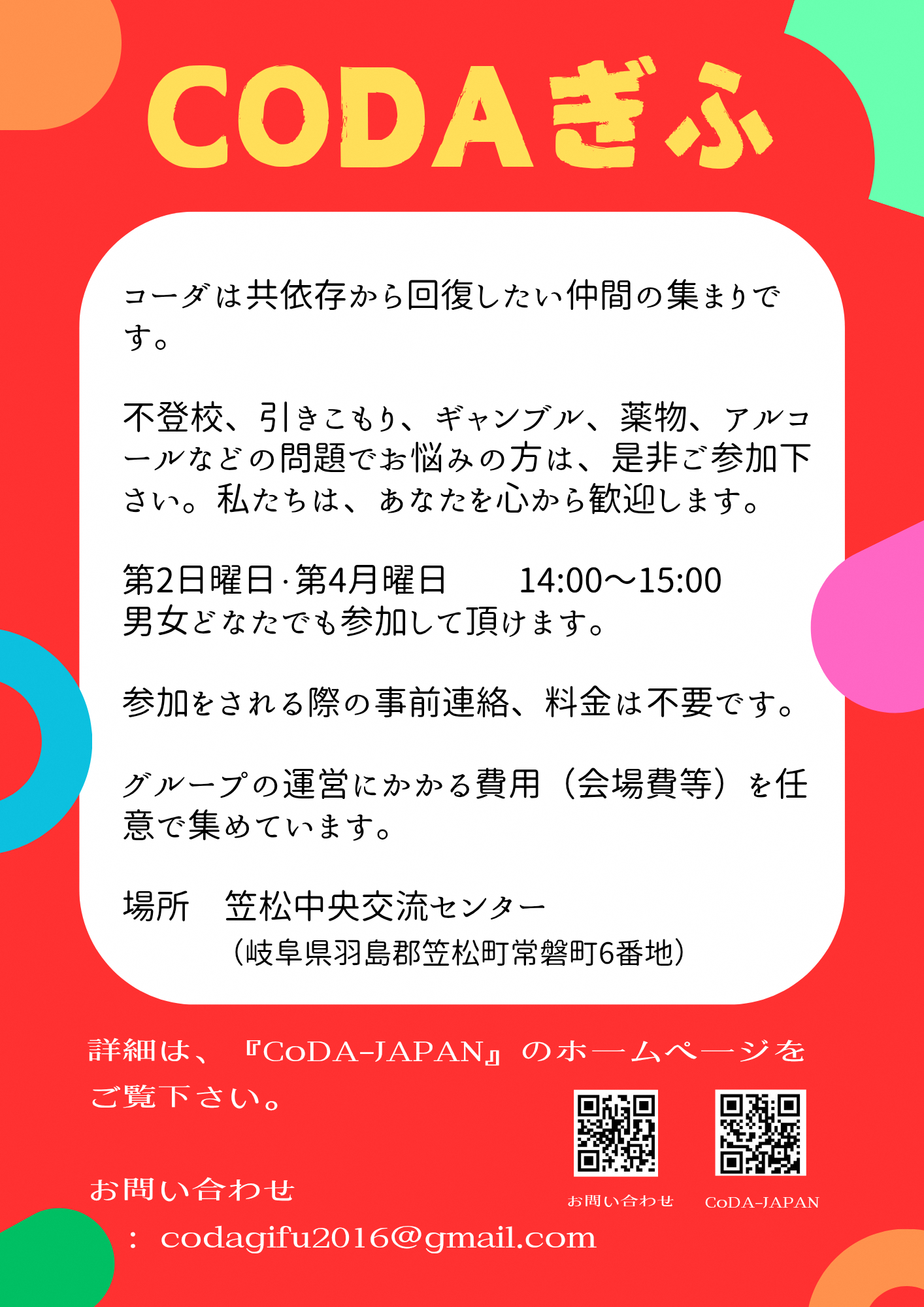 ピア岐阜は薬物の問題を考える家族・友人の会です。ピア岐阜 [その他のファイル/510KB]