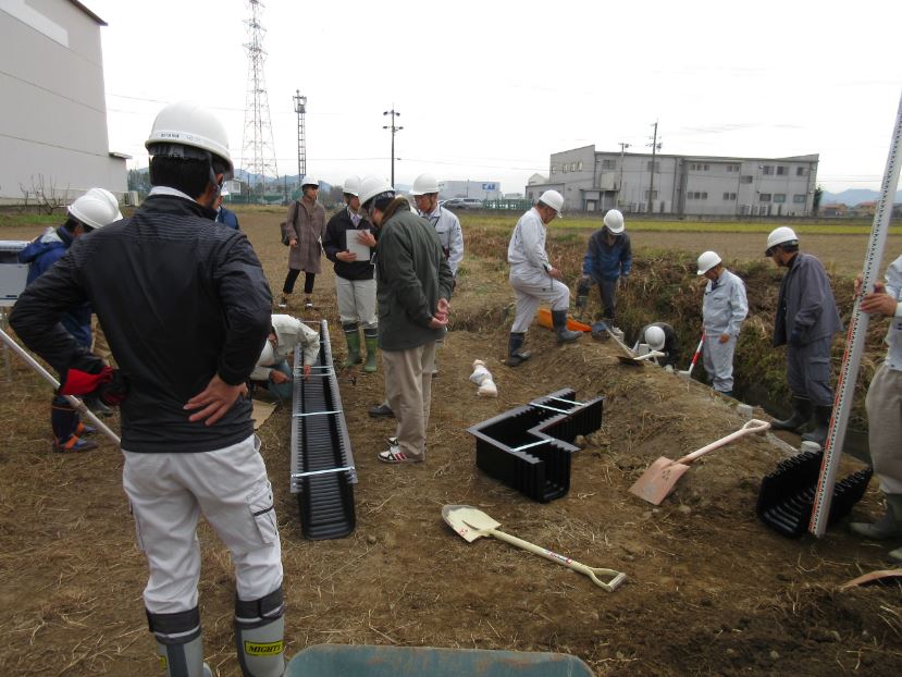 農業用排水路と水田の間の落差を、水田魚道の設置により解消しています。水田魚道の製作・設置は地域住民が中心となって実施しました。