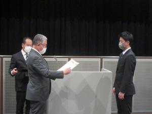 このたび、認定試験に合格し、新たにコミュニティ診断士として認定される11名の方々に、大野雅人県環境生活部次長、高橋利行岐阜協立大学副学長から認定証が授与され、第21期生を代表して、中川恵吾さんから今後の抱負を述べていただきました。