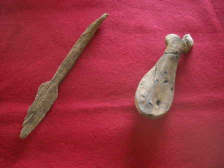 杓子(左が荒尾南遺跡出土・右が今宿遺跡出土)