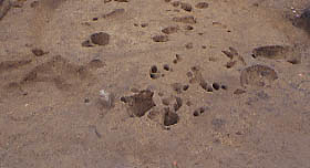 揖斐川の支流粕川(かすがわ)の上流部に立地し、竪穴住居跡(たてあなじゅうきょあと)7軒・立石遺構などを確認しました。縄文土器・石器・土偶(どぐう)・石棒(せきぼう)が出土し、縄文人の生活や祭祀に対する意識を解明する多くの資料を得ることができました。