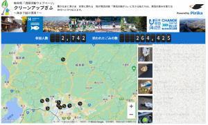 そこで、企業や団体、個人による自主的な清掃活動の成果等を「見える化」するウェブページを開設しました。このウェブページは、ごみ拾いSNS「ピリカ」と連動し、投稿した清掃活動の成果が、リアルタイムでウェブページ上のマップに反映されます。
