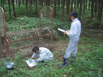 野生いのししによる経口ワクチン摂食状況の調査現場