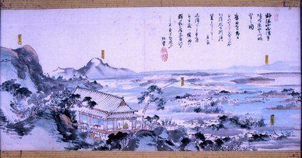 「妙法山正傳寺境内糸貫川眺望之図」に描かれた本堂兼庫裡(北西から見た様子)