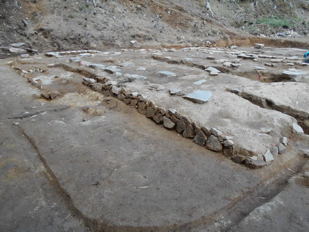 平成28年度に実施した発掘調査では、本堂兼庫裡として使われた礎石建物1棟のほか、石垣・石列など寺院に関わる遺構を検出しました。
