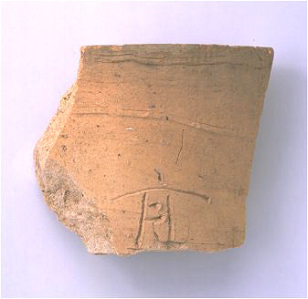 丸瓦の凸面に「高」の文字のヘラ書きが見られます。この「高」は、この遺跡で出土した墨書土器などより「高家寺(たきえじ)」の「高」と考えられます。「高家寺(たきえじ)」と呼ばれる古代寺院が存在したことをうかがわせる貴重な資料です。「高家寺(たきえじ)」という名称は、古代の飛騨国荒城郡にあった郷名「高家(たきえ)」に由来すると考えられています。