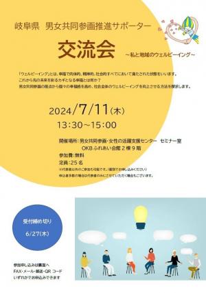 岐阜県では、男女共同参画社会の実現を目指し、活動をしてくださる男女共同参画推進サポーターに向けて、交流会を開催しています。