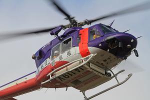 防災航空隊では、様々な資機材を使用し救助、消火及び救急活動を実施しています。