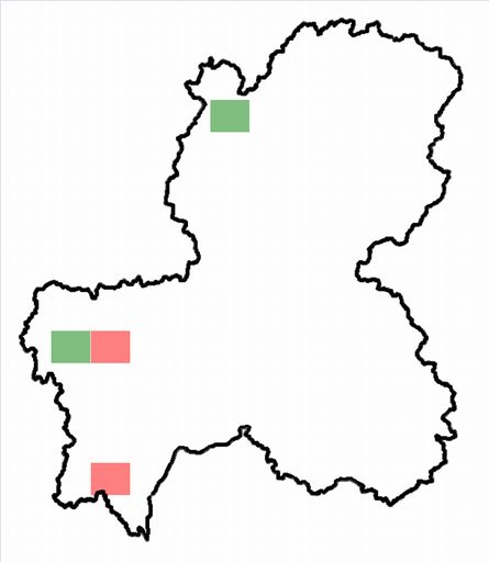 全国的に分布域をもつ種でありながら、県内では数ヶ所でしか確認されていない。また、本種は大規模な集団を形成することが知られているが、大きな集団は1ヶ所でしか確認されていない。 |
