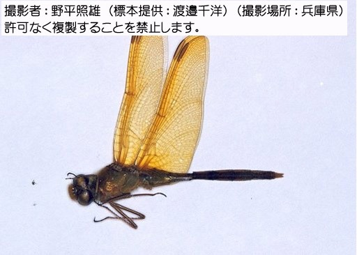 本種の生息には幼虫の生活場であるヨシなど抽水植物が繁茂した水湿地と羽化直後の個体が生活する落葉広葉樹林という複合した環境が必要であるため、現存するこのような環境を保全する。 |