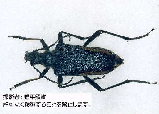 成虫は7〜8月に出現し、ノリウツギ、リョウブなど落葉広葉樹の花に飛来する。雌は針葉樹の立ち枯れ木や伐採木に飛来し産卵する。幼虫はトウヒ、オオシラビソなどの針葉樹の倒木に穿孔して生活する。 |