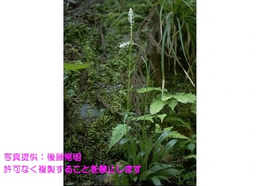 高さ15〜50cm程度の多年草。花は小さな花が穂状に集まってつき色は白色。葉は長楕円形で厚く光沢がある。シライトソウの変種でよく似ているが、上側の花被弁の長さは3mmで、シライトソウの花被弁が7〜10mmであるのに対して短いことで区別される。 |