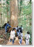 天保13年から14年(1842〜1843年)に植栽された、ただ一つ現存する苗木場で、苗木は天然の稚樹を山引きしたもので、ヒノキ・サワラが混じって植えられたと考えられます。明治・大正時代に枝打ち・間伐が実施されましたが、以後手を加えず現在に至っています。