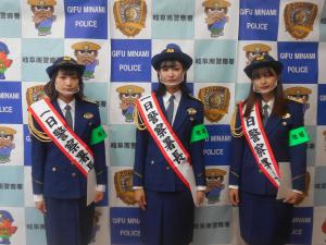 一日警察署長3名は、警察署内の巡視やJR岐阜駅前での防犯啓発活動、特別警戒出発式へ参加しました。