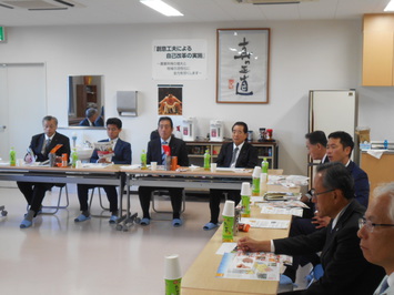 日進木工株式会社において、加工技術や生産ラインなどについて説明を受ける委員 |