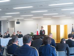 副議長は、「住民どうしの連帯意識が希薄になりつつあると言われる昨今、地域の安全確保に対し、県民の皆様方が寄せる警察への期待は極めて大きいと認識しております。皆様方におかれては、本日の受賞を契機とされ、一層ご精励いただくとともに、長年にわたって培ってこられた豊富な知識や経験、優れた技能を活かし、警察力維持のため若手警察職員の育成にも取り組んでいただくよう、お願い申し上げます。」と祝辞を述べました。