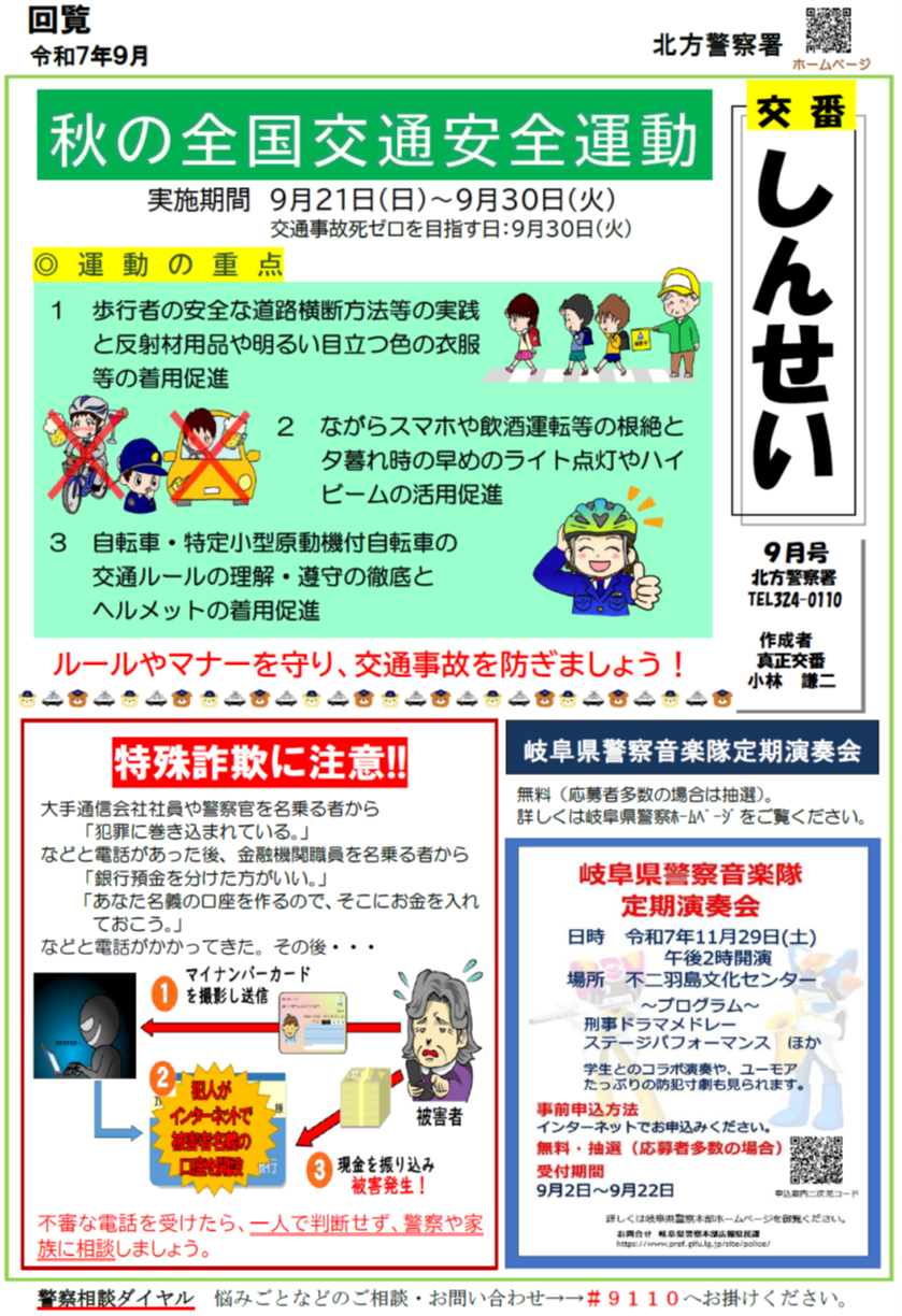 【北方警察署】真正交番 ミニ広報紙 9月号発行