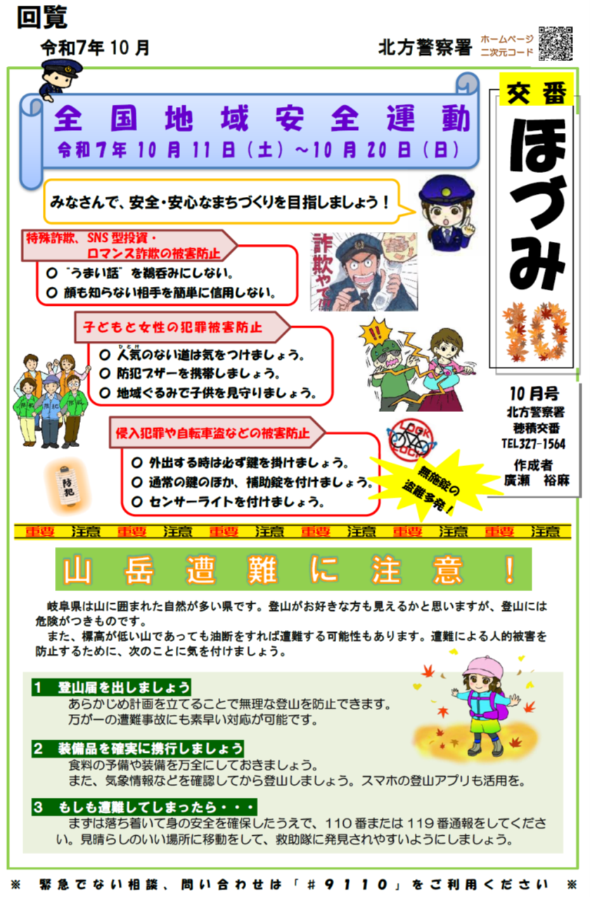 【北方警察署】穂積交番 ミニ広報紙 10 月号発行