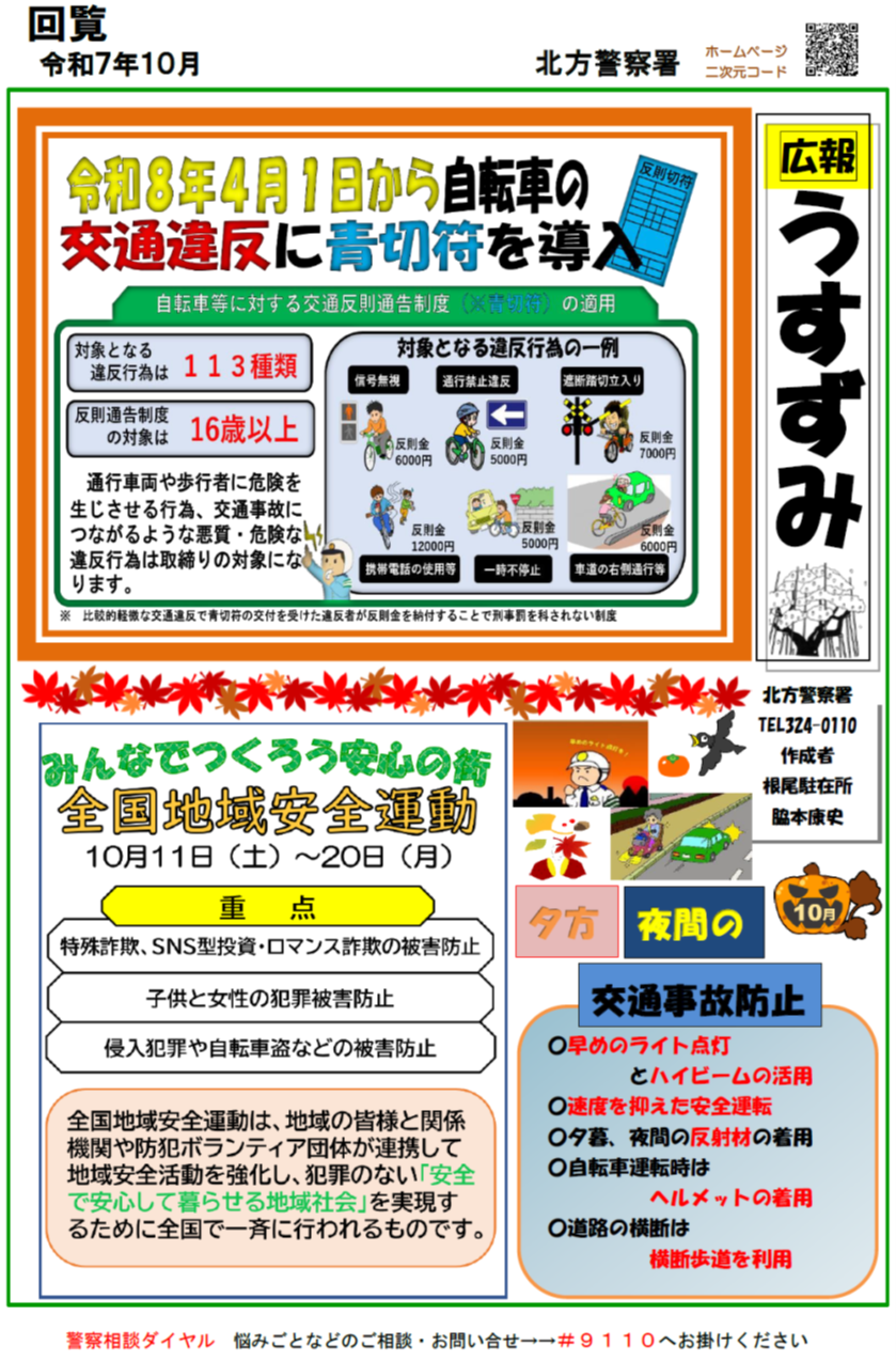 【北方警察署】根尾駐在所 ミニ広報紙 10月号発行