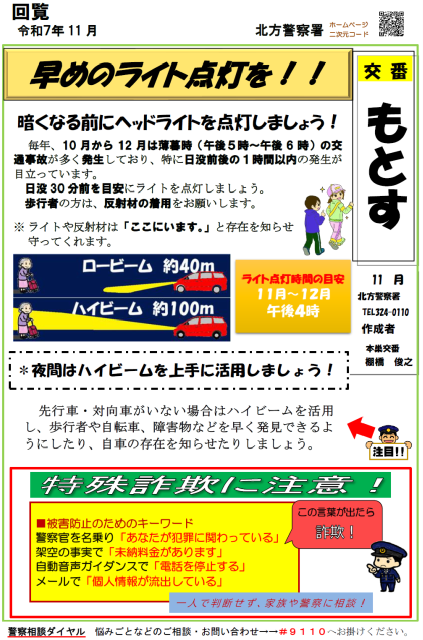 【北方警察署】本巣交番 ミニ広報紙 11月号発行