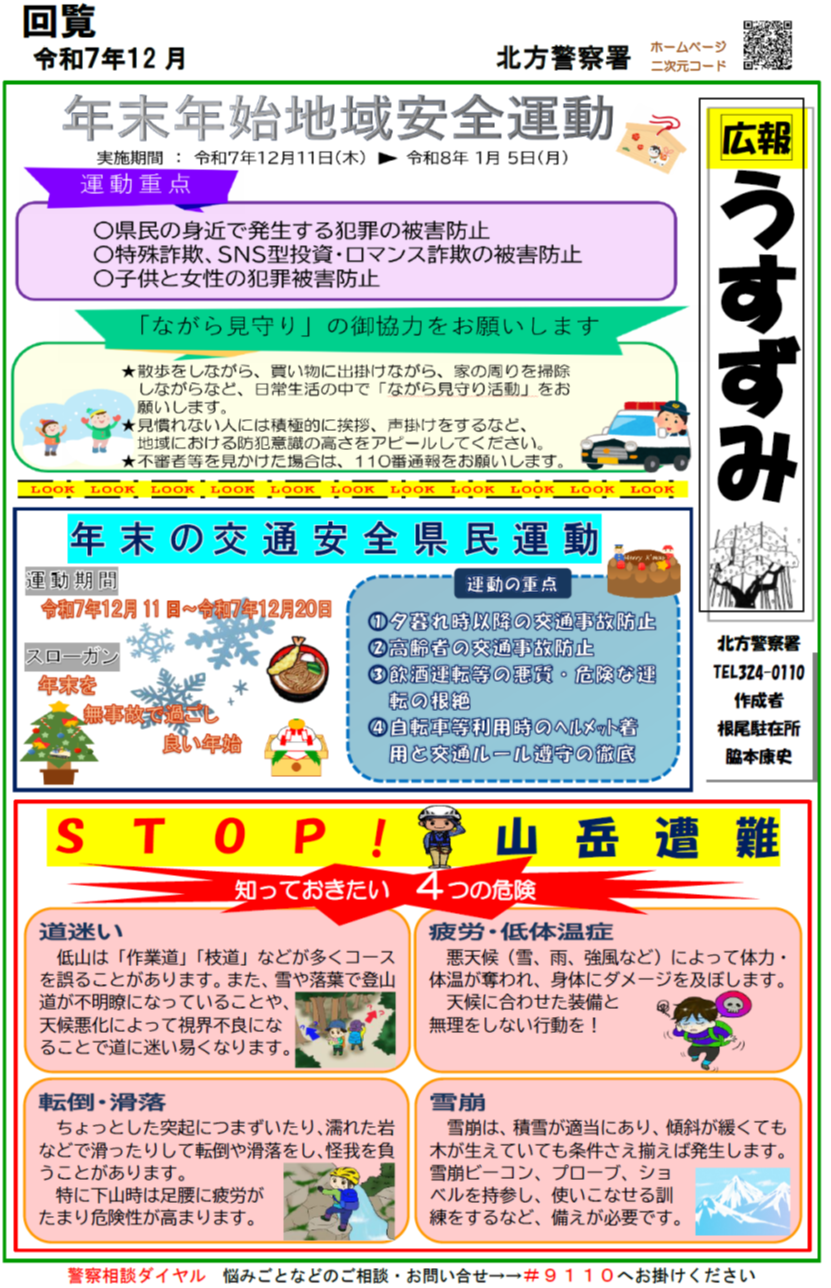 【北方警察署】根尾駐在所 ミニ広報紙 12月号発行