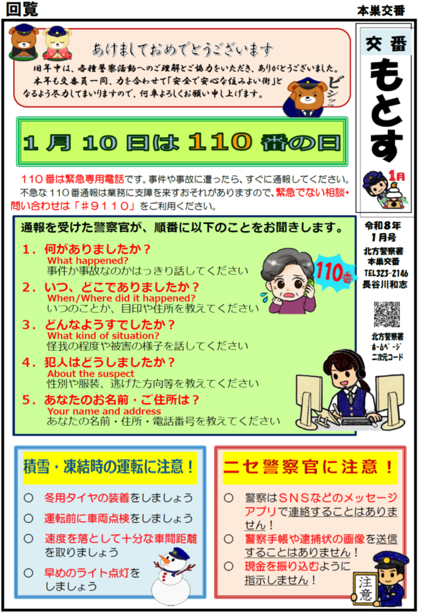 【北方警察署】本巣交番 ミニ広報紙 令和8年1月号発行