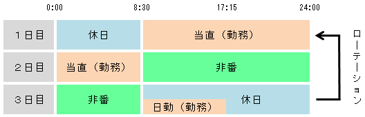 ※非番は、当直で翌日の朝まで勤務した後の日のことで、当直明けに帰宅することができます。