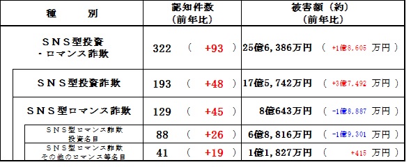 SNS型投資・ロマンス詐欺の発生状況
