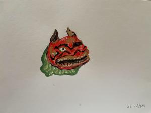 (3) 和紙の貼付け(色付けした和紙を竹組みに貼り付けて、ちーオシスタチューを完成させます)